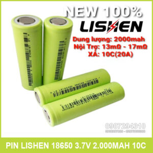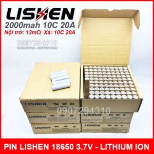 Cell pin Lishen xám 18650 2000mAh 3.7V 10C nội trở 13 chính hãng – hộp 100 viên