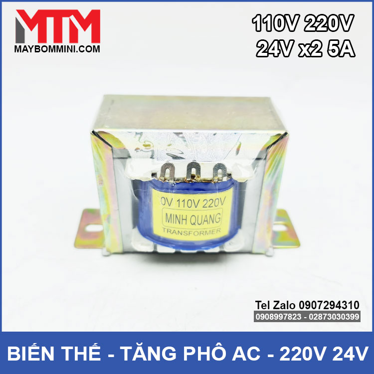 Bán biến thế 220V ra 24V AC 5A – kép hay còn gọi là nguồn tăng phô đôi. Được dùng rộng rãi trong các thiết bị điện gia dụng, thiết bị điện tử, thiết bị âm thanh ánh sáng, ổn áp và nhiều ứng dụng khác.