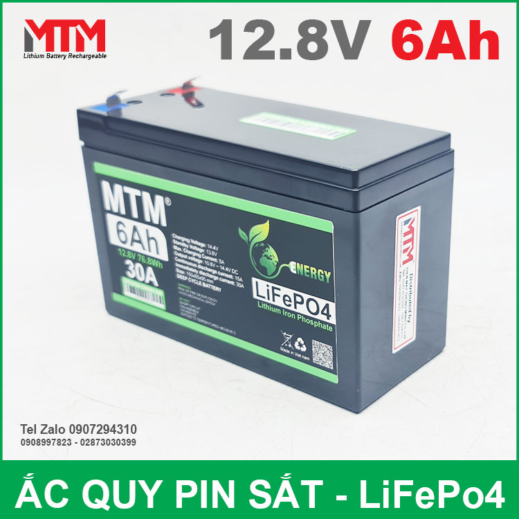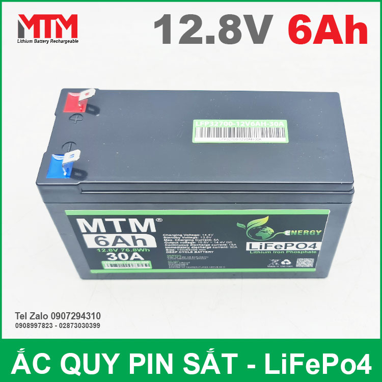 Bình ắc quy pin sắt LiFePo4 12V 6Ah 30A