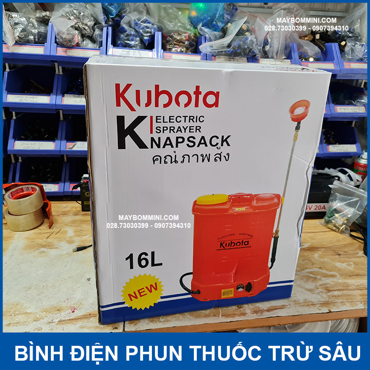 Bán bình phun xịt trừ sâu khử khuẩn tưới cây bằng điện Kubota 16L công nghệ mới đả được cải tiến hoàn thiện tốt hơn và mạnh hơn. Với bình chứa 16 lít công suất máy bơm 45W và bình ắc quy 8Ah thì bạn có thể phun xịt liên tục rất tiện lợi.