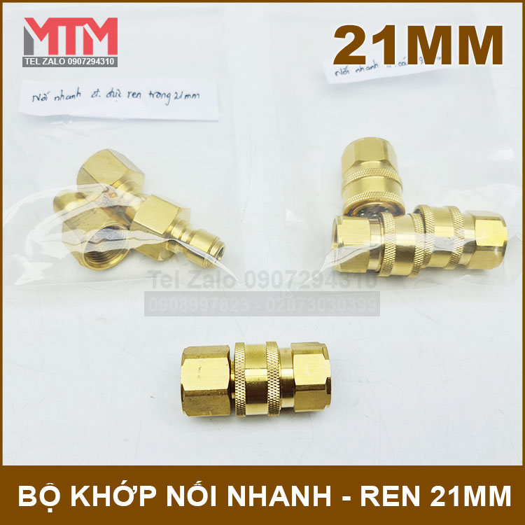 Bộ khớp nối nhanh ống ren 21mm sử dụng cho hệ thông cấp nước, máy rửa xe gia đình áp lực cao. Được thiết kế với công nghệ khớp nối bi chịu lực, chống rò rỉ nước khi có áp lực càng lớn. Sử dụng đơn giản tiện lợi để nối nhanh ống dây vào hệ thống cấp nước, máy bơm vòi xịt…