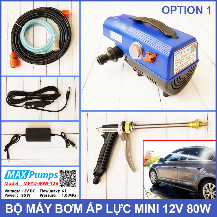 Bán phân phối sỉ và lẻ các loại máy bơm nước mini áp lực 12V 24V chính hãng giá tốt giao hàng tận nhà. Bộ máy bơm áp lực mini 12V 80W Maxpumps option 1 dùng rửa xe, tưới cây, vệ sinh máy lạnh, phun thuốc sâu, vệ sinh nhà cửa vật dụng gia đình rất tốt và nhỏ gọn.