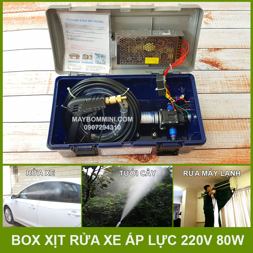 Bạn cần tìm dụng cụ để vệ sinh rửa xe máy xe oto giá rẻ gọn nhẹ tiện lợi tiết kiện thì Box xịt rửa xe mini áp lực 220V 80W là lựa chọn hợp lý vì được tích hợp máy bơm áp lực và bộ dụng cụ. Liên hệ trực tiếp chúng tối hoặc đặc hàng online để được tư vấn và có giá tốt hơn giao hàng tận nhà toàn quốc.