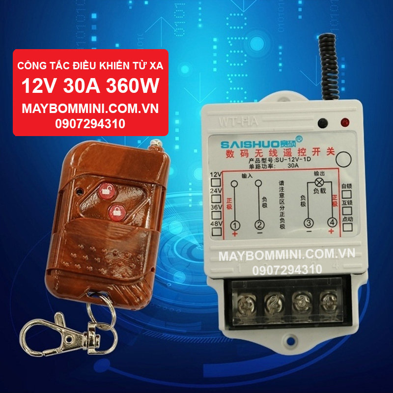 Chuyên bán các loại công tắc điều khiển từ xa 12V 30A dùng để tắc mở các thiết bị từ xa thông qua một remote nhỏ móc khóa rất chuyên nghiệp. Tắc mở các thiết bị giá dụng, đèn, quạt, mortor, máy bơm nước, máy bơm xịt vệ sinh máy lạnh …