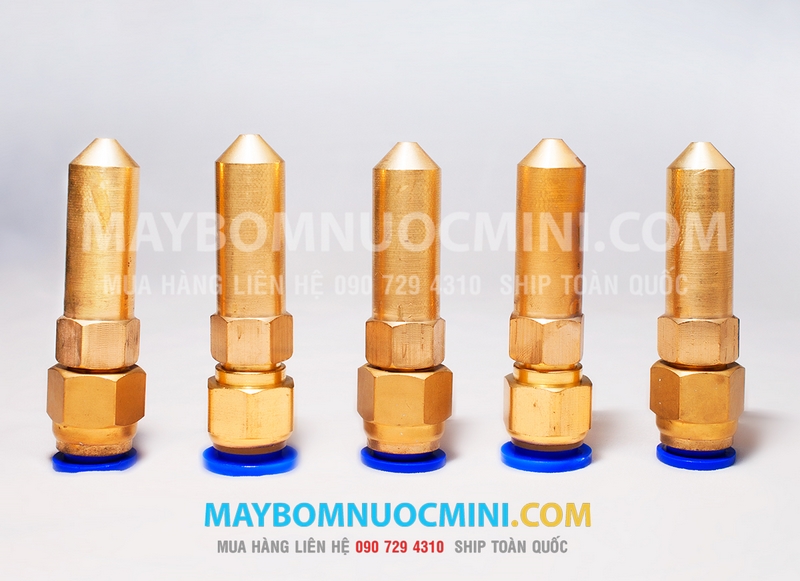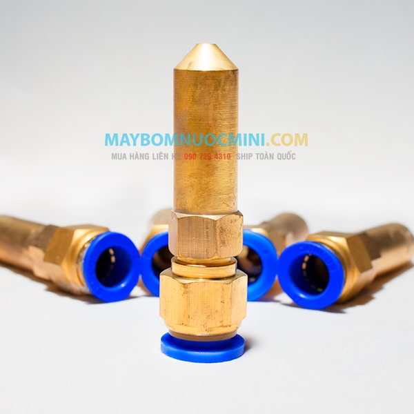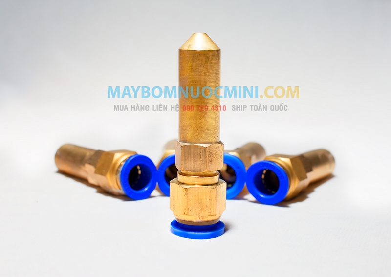 Đầu xịt hay còn gọi là béc phun áp lực được sản xuất bằng đồng có đầu phun nhỏ giúp tăng áp lực nước khi dùng máy bơm nước mini.