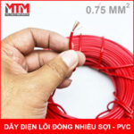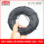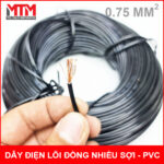 Dây điện lõi đồng nhiều sợi 0.75mm2 vỏ cách điện PVC giá tốt bán theo cuộn hoặc theo mét. Đây là dây điện có lõi nhiều sợi đồng xoắn lại thành dây có tiếp diện 0.75mm2 dẫn điện và chịu tải tốt hơn.