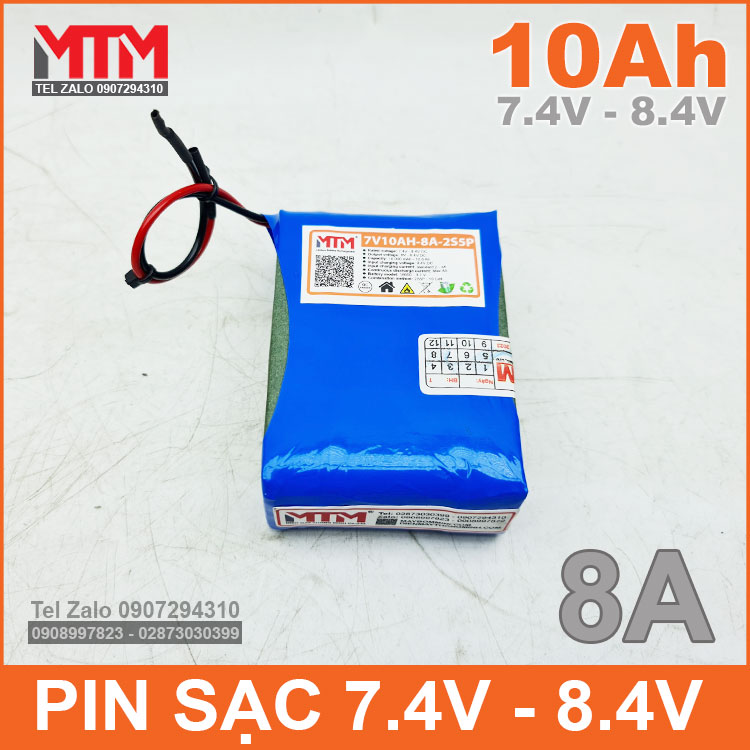 Khối pin sạc 7.4V 8.4V 10Ah 8A MTM sử dụng để chạy motor, quạt, máy bơm mini, pin loa , pin camera, pin thiết bị điện tự động, pin đèn led, pin sạc đồ chơi, pin dự phòng cho khoá, pin remote RC. Pin có tuổi thọ cao chất lượng được khách hàng tin dùng vì ổn định dòng chịu tải khỏe và nhỏ gọn rất tiện lợi khi sử dụng. Chúng tôi có nhận làm pin ghép pin đóng pin thay pin thiết bị theo yêu cầu khách hàng gần xa với giá tốt.