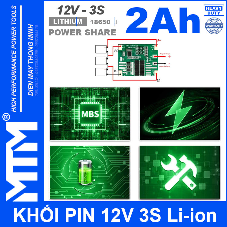Khối pin sạc Li-ion 12V 2Ah 10A 3S MTM kèm sạc pin sử dụng để chạy motor, quạt, máy bơm mini, pin loa kéo, pin camera, pin thiết bị điện tự động, pin đèn led, pin sạc đồ chơi, pin dự phòng cho khoá cửa wifi modem box tivi. Pin có tuổi thọ cao chất lượng được khách hàng tin dùng vì ổn định dòng chịu tải khỏe và nhỏ gọn rất tiện lợi khi sử dụng. Chúng tôi có nhận làm pin ghép pin thay pin thiết bị theo yêu cầu khách hàng gần xa với giá tốt.