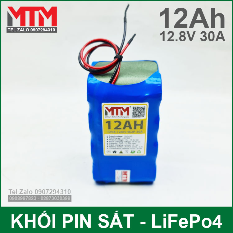 Khối pin sắt 12.8V 12Ah 4S LiFePo4 chịu tải tối đa 30A