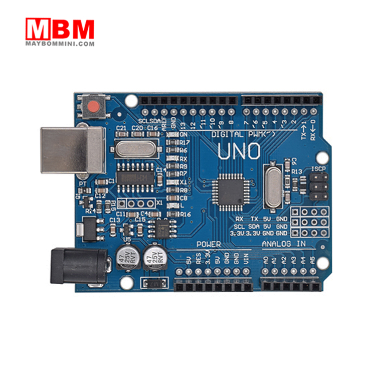 Máy Bơm Mini chuyên cung cấp Arduino Uno R3 là Board mạch rất phổ biến trong các dòng Arduino hiện nay thì phiên bản Uno là Revision 3 là phiên bản mới nhất hiện giờ, các bạn nên lưu ý điểm này rất quan trọng vì ở 1 số nơi bán loại không phải R3 mà là các phiên bản cũ với cấu trúc phần cứng dễ lỗi và board sẽ dễ cháy hơn với phiên bản R3 mới nhất. Bạn chỉ cần kết nối Arduino Uno R3 với máy tính(PC) hoặc Laptop bằng cáp USB để nạp code cho nó một cách rất dễ dàng.
