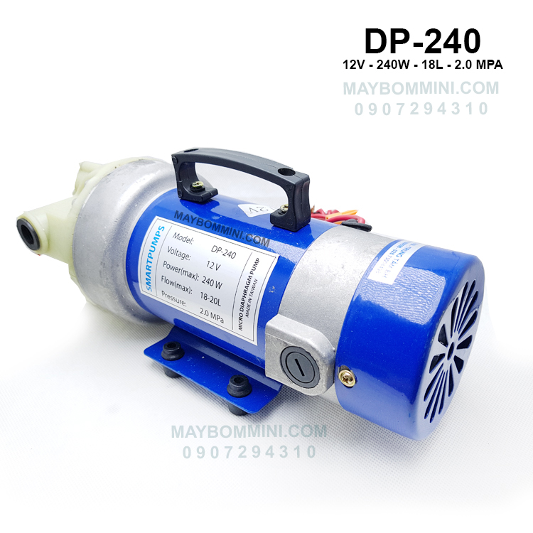Máy bơm áp lực mini 12V 240W DP-240 có thể dùng rửa xe vệ sinh máy lạnh phun thuốc trừ sâu rất tốt với áp lực lớn dùng nguồn bình ắc quy hoặc biến thế 12v gọn nhẹ dể lắp đặt và mang đi ưu điểm áp khá mạnh.