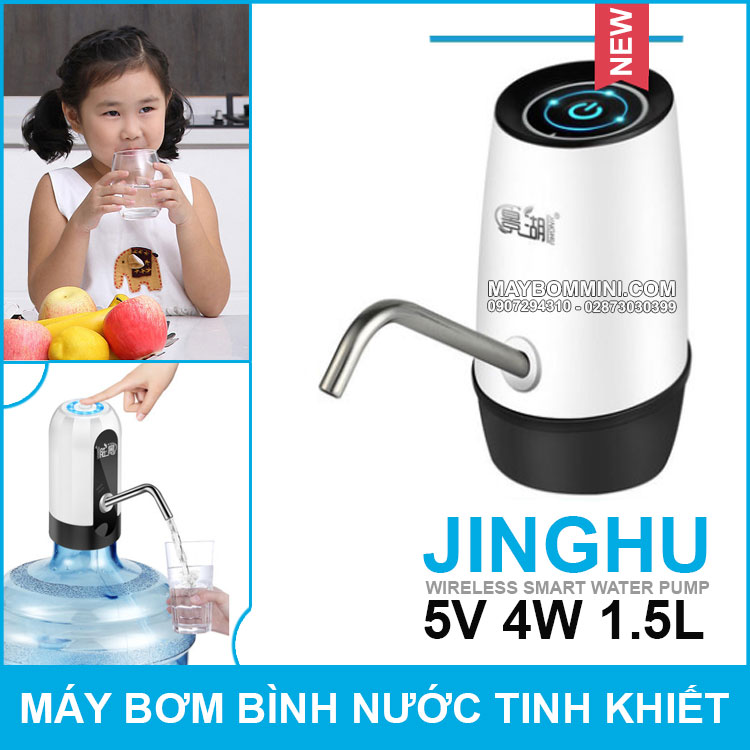 Bán máy bơm bình nước suối nước khoáng JINGHU 5V 4W 1.5L đây làm loại máy bơm vòi bơm dùng cho bình nước suối bình nước cho máy nóng lạnh dùng trong gia đình văn phòng nhà hàng quán ăn. Sử dụng công nghệ mới an toàn sức khỏe, tiện lợi dể lắp đặt không cần cấm điện giá tốt bảo hành chính hãng.