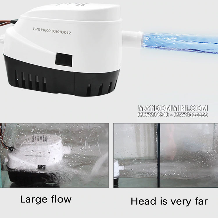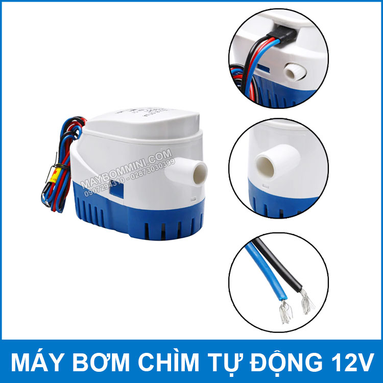 Máy bơm chìm 12V 60W 600GPH 600G tự động để bơm nước thải nước ngập, bơm nước trên ghe tàu thuyền canô tự động. Đây là loại máy bơm chìm chuyên dụng có độ bền cao chịu được nước biển.