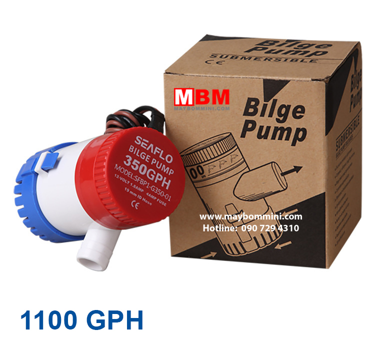 Máy bơm chìm 12V SFBP1 G1100 là loại máy bơm chìm chuyên dụng để bơm chất thải, nước thải, bơm nước trên ghe tàu thuyền canô . Đây là loại máy bơm chìm có công suất khá lớn và lưu lượng bơm mạnh đạt 1100 Galon/h mà chỉ dùng nguồn 12V.