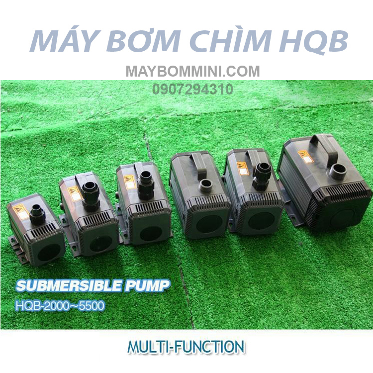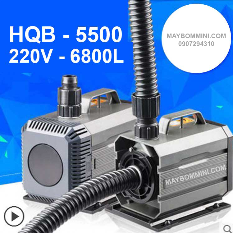 Máy bơm chìm HQB-5500 là loại máy bơm chìm chuyên dụng để bơm chất thải, nước hồ cá, bơm nước hòn non bộ. Loại máy bơm chìm có công suất khá lớn và lưu lượng bơm mạnh đạt 6800L/H.