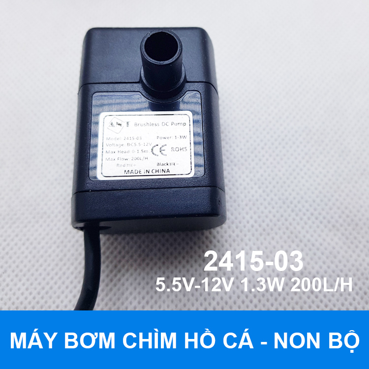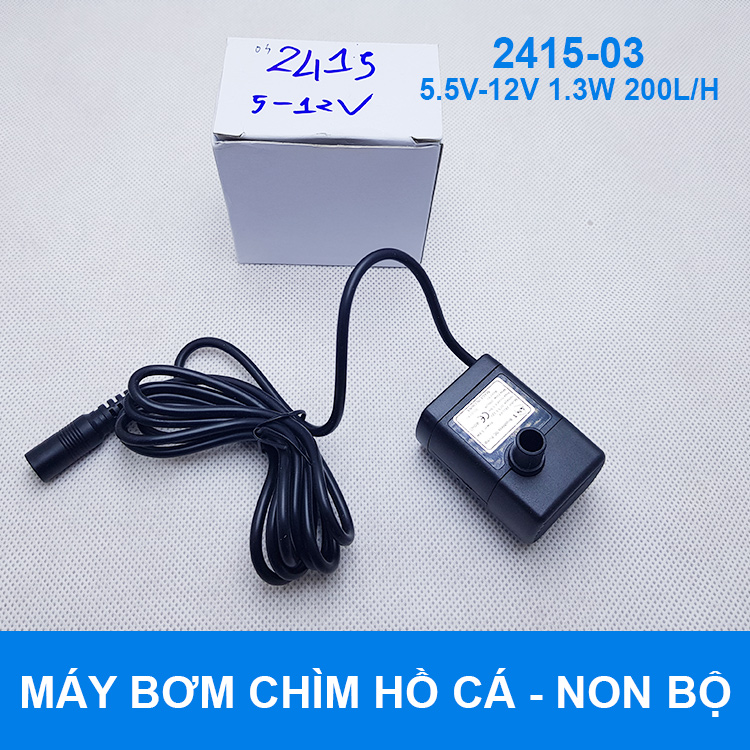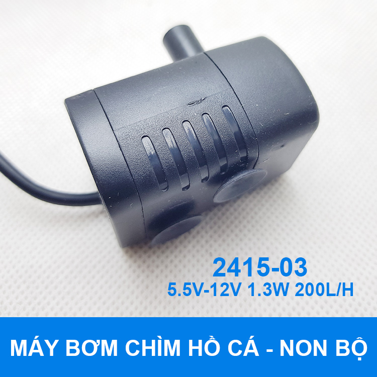 Chuyên bán máy bơm chìm 5V 12V 200L 1.5M là loại máy bơm chìm chuyên dụng để bơm chất thải, nước hồ cá, bơm nước hòn non bộ. Đây là loại máy bơm chìm có công suất nhỏ và lưu lượng bơm 200L/H phù hợp bơm thủy sinh, hồ cá nhỏ, hòn non bộ phong thủy trong nhà.
