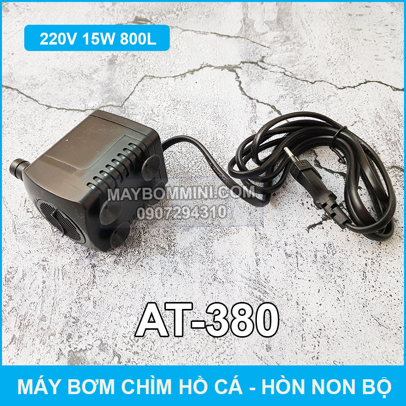 Chuyên cung cấp phân phối sỉ lẻ các loại máy bơm chìm hồ cá hòn non bộ thác nước 220V 15W 800L AT-380 giá rẻ cao cấp lưu lượng lớn và bơm đẩy cao. Bơm nước 220V AT-808 rất thích hợp dùng cho hồ cá, hòn non bộ và thác nước trong nhà gia đình chạy liên tục không chổi than.