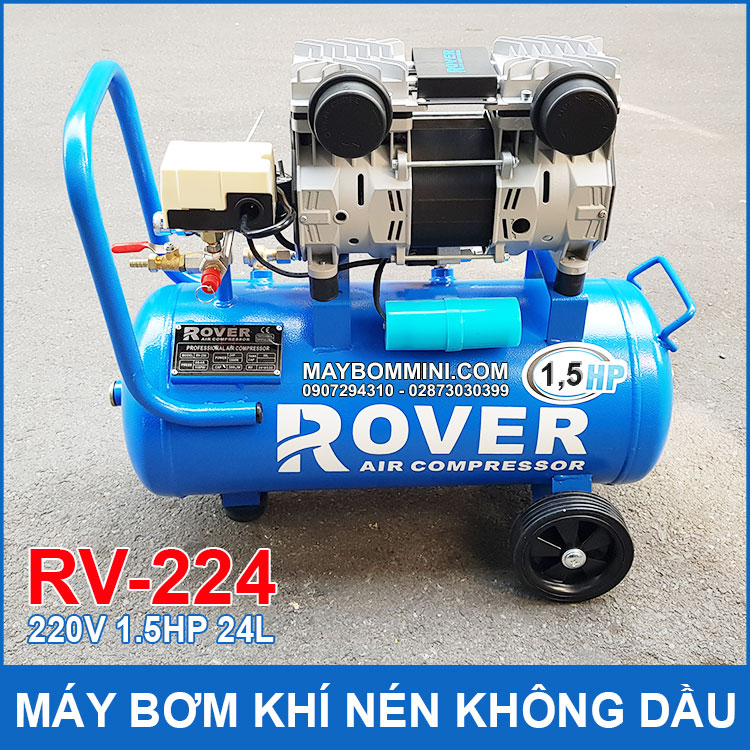 Máy bơm hơi khí nén không dầu 220V 1.5HP 24L ROVER RV-224 cao cấp chính hãng với công nghệ bơm không dầu mới nhất hiện nay. Máy bơm hoạt động tiếng ồn thấp bơm nhanh và áp lực mạnh, motor được sử dụng 100% lõi đồng nên động cơ rất bền và tiết kiệm điện khi sử dụng.