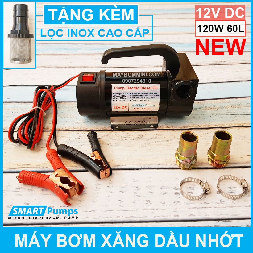 Phân phối sỉ và lẻ máy bơm xăng dầu nhớt 12V 120W 60L SMARTPUMPS chuyên dụng bơm nhiên liệu. Với với công xuất bơm lớn và lưu lượng cao thích hợp bơm nhiên liệu tàu xe phương tiện bơm sang chiết chất lỏng.
