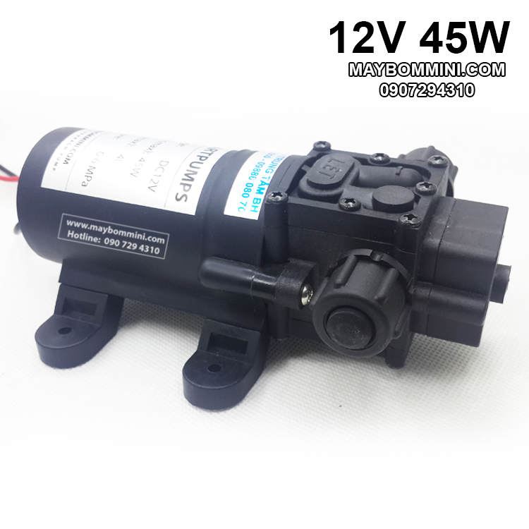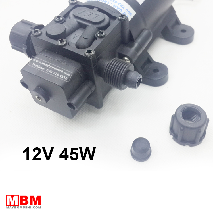 Bơm Nước Mini Áp Lực 12V 45W là loại bơm nhỏ gọn dùng nguồn 12v 5A rất thích hợp phun thuốc trừ sâu, phun sương tưới lan và vệ sinh máy lạnh. Máy bơm nước mini 12v 45w do maybommini.com độc quyền phân phối tại Việt Nam với thương hiệu SmartPumps.