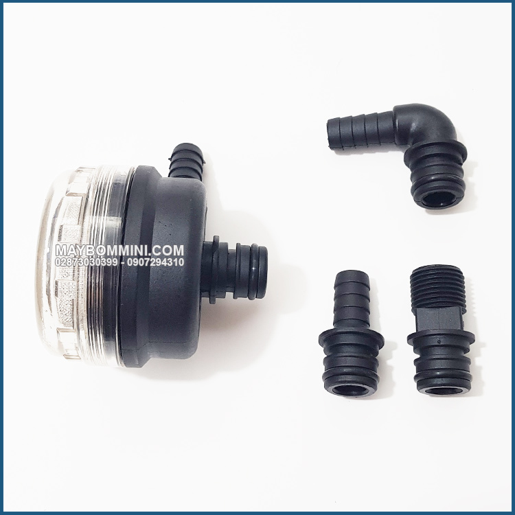 Nước vào sử dụng ống 14mm 17mm có lọc nước mini tránh cặn bẩn rác gây nghẹt đầu bơm.