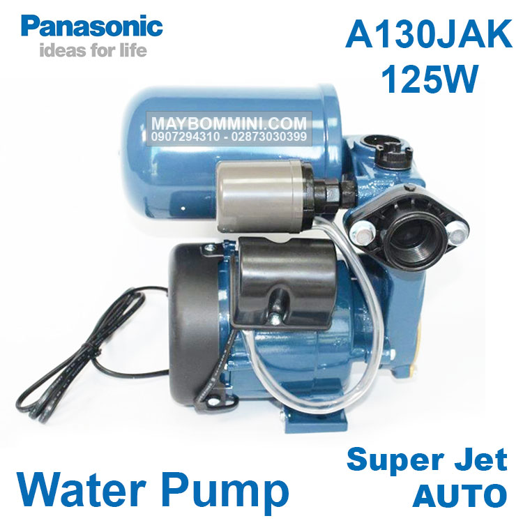 Phân phối chính hãng máy bơm nước tăng áp trợ lực gia đình Panasonic A-130JAK 125W là dòng sản phẩm máy bơm nước tăng áp thích hợp với các tòa nhà cao từ 1 – 3 tầng. Sử dụng để bơm nước từ mặt đất lên bồn chứa nước trên nóc các tòa nhà hoặc đưa nước từ bồn chứa đến các vị trí trong nhà khi bồn chứa nước thấp, áp lực nước yếu. Còn đối với các bồn chứa nước ở vị trí thấp, áp lực nước nhỏ, máy tự động tăng áp lực nước bơm ra vận hành êm, độ ồn thấp.