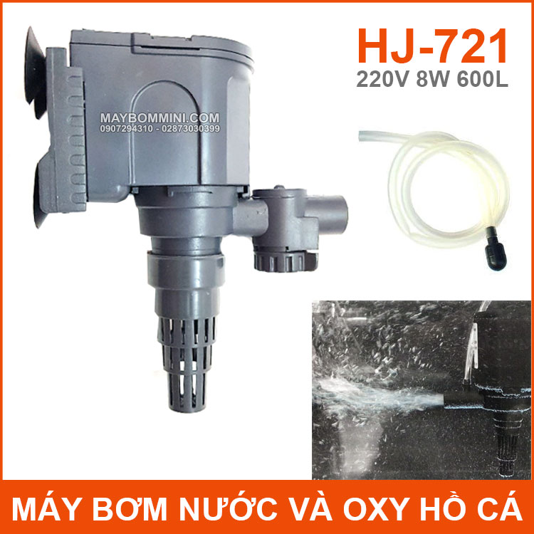 Máy bơm nước và oxy hồ cá 220V 8W 600L SUNSUN HJ-721 chất lượng giá tốt tiết kiệm điện và chạy được liên tục. Đây là loại máy bơm có thiết kế mới 3 trong 1 được đánh giá rất tốt từ người tiều dùng vì tiện lợi tiết kiệm nhỏ gọn.