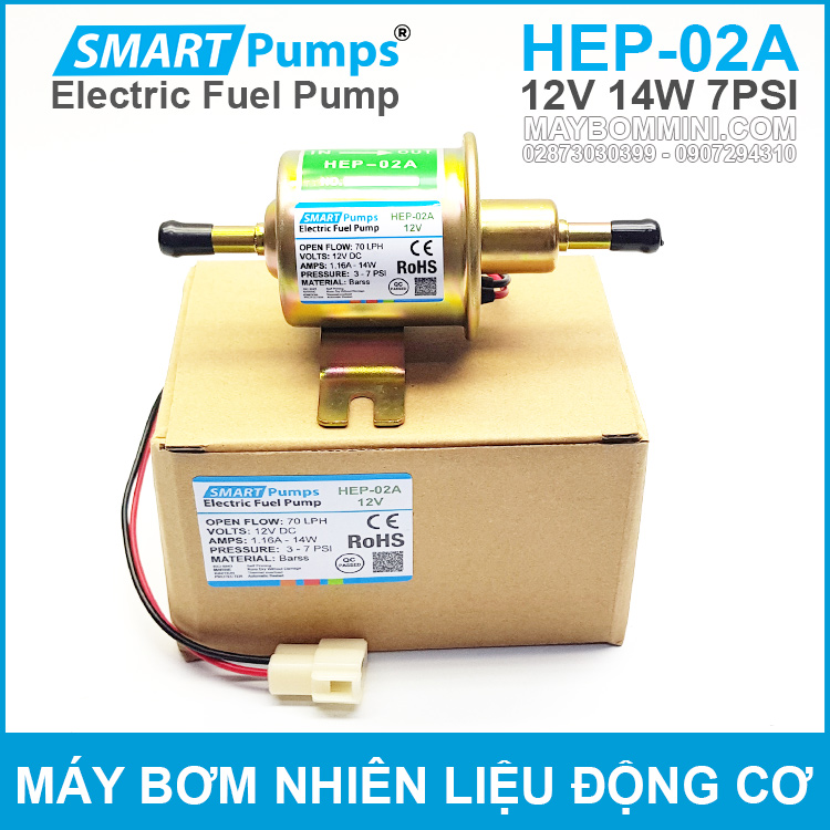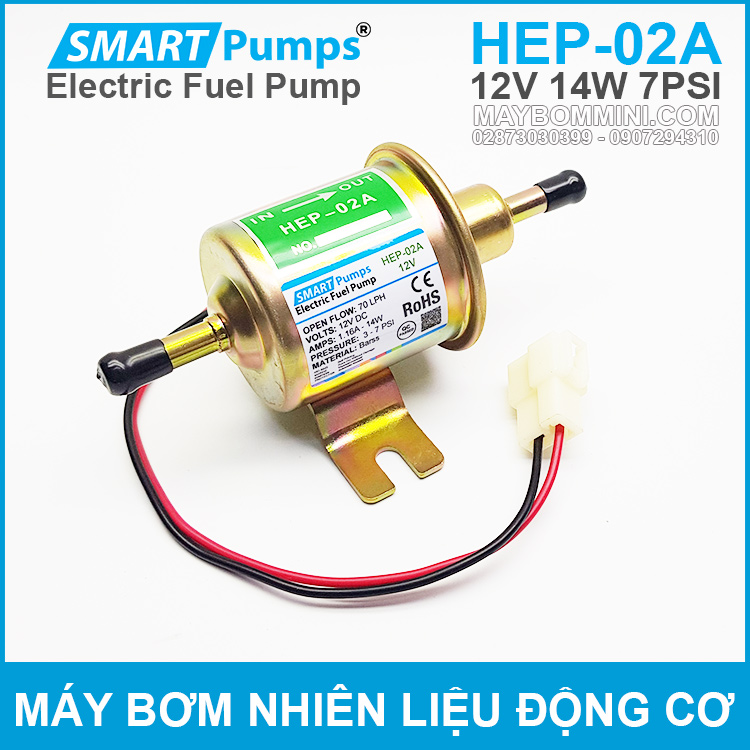 Máy bơm xăng dầu động cơ ôtô 12V HEP-02A Smartpumps chính hãng chuyên dụng chất lượng cao. Đây là loại máy bơm dùng cho các loại xe ôtô xe máy sử dụng xăng dầu diesel để bơm trợ lực lên động cơ khi hoạt động.