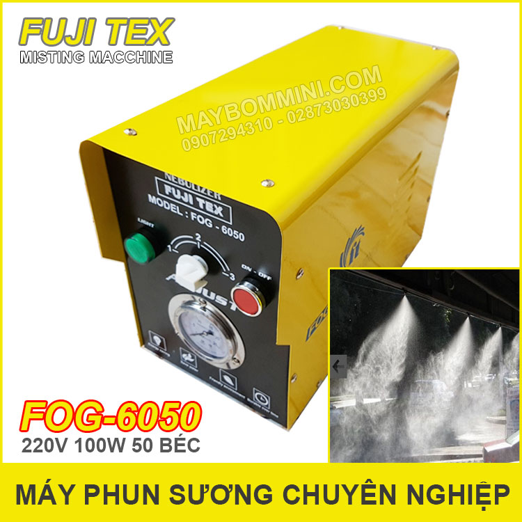 Chuyên phân phối chính hãng máy phun sương chuyên nghiệp 220V 100W 50 béc Fuji Tex FOG-6050 giá tốt trên toàn quốc. Máy phun sương FOG-6050 thiết kế tích hợp rất tiện khi lắp đặt và sử dụng làm mát tưới cây cho gia đình và các quán cà phê nhà hàng có diện tích lớn.