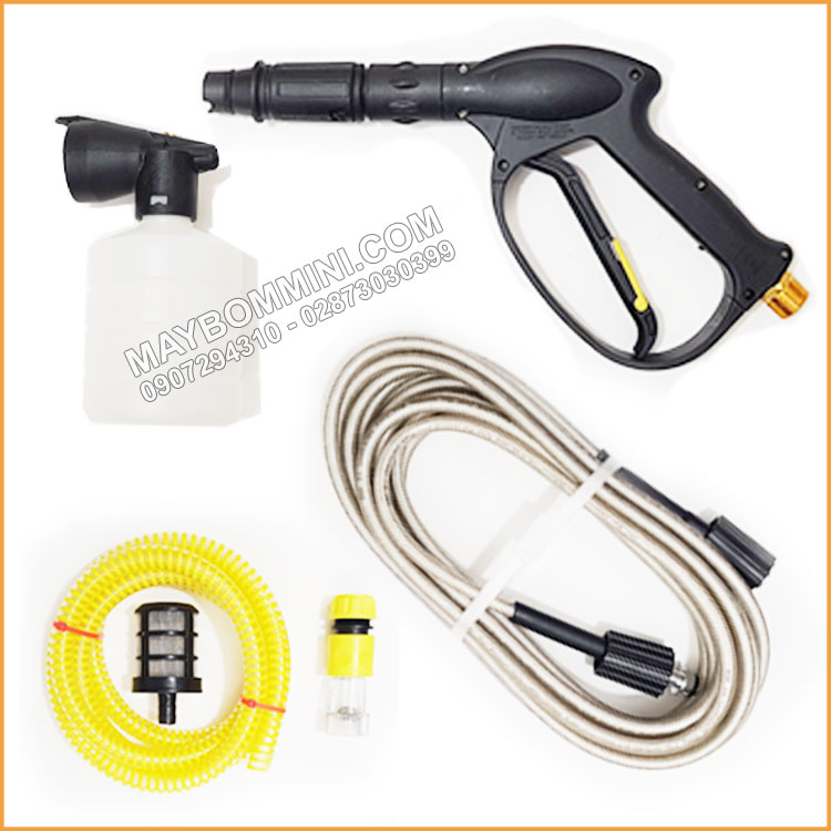 Việc lắp ráp máy với các phụ kiện rất đơn giản, vì các phụ kiện kèm theo đều là các đầu nối nhanh cao cấp. Bạn chỉ chỉ việc lắp đúng theo các khớp nối là xong và chỉ cần cắm điện, bỏ ống dây nước vào xô nước là xịt.