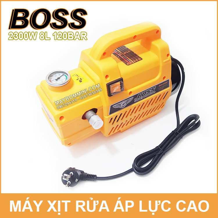 Máy xịt rửa áp lực cao 220V 2300W 120Bar 8L BOSS BO-2300 sử dụng để rửa ôtô xe máy, vệ sinh bếp nhà hàng, nhà cửa gia đình, vật dụng, máy móc công nghiệp, vệ sinh máy lạnh hoặc dùng phun tưới cây được sản xuất với công nghệ mới được khách hàng đánh giá cao về chất lượng.