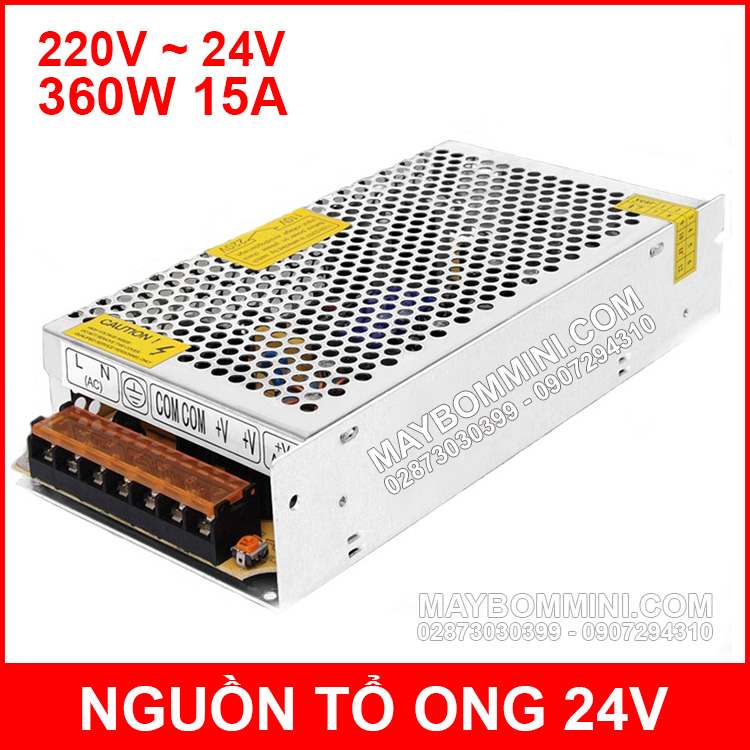 Cung cấp phân phối nguồn tổ ong biến thế 220V ra 24V 15A 360W sử dụng cho các thiết bị điện 12V DC như đèn LED mạch điện, motor, máy móc, thiết bị điện tử, máy bơm mini, camera, modem box và thiết bị khác.