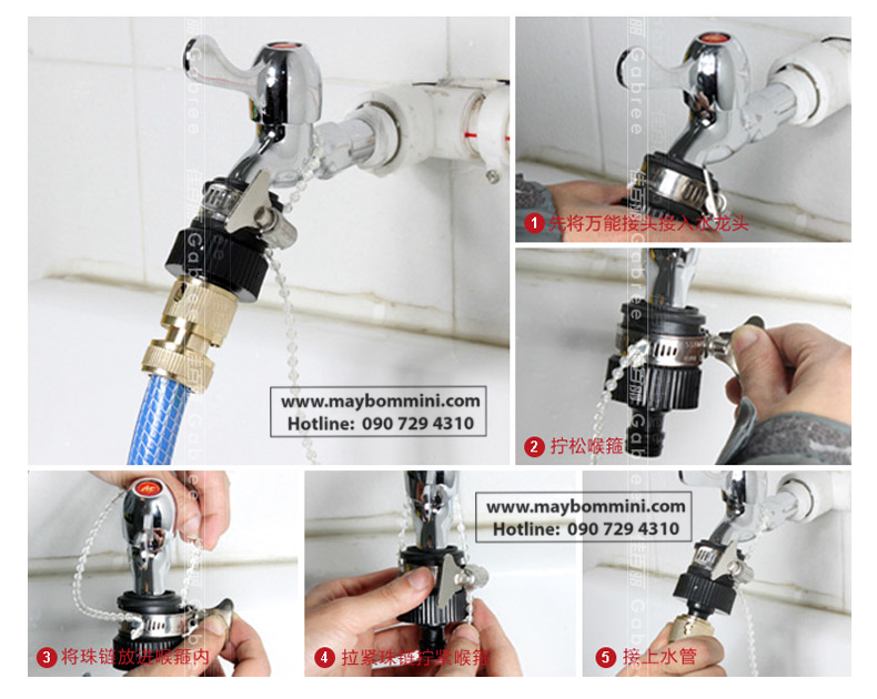 Được thiết kế cho phép nối nhanh các loại vòi nước tại gia đình và gắn chặc bằng khóa cổ dê nhanh chống.