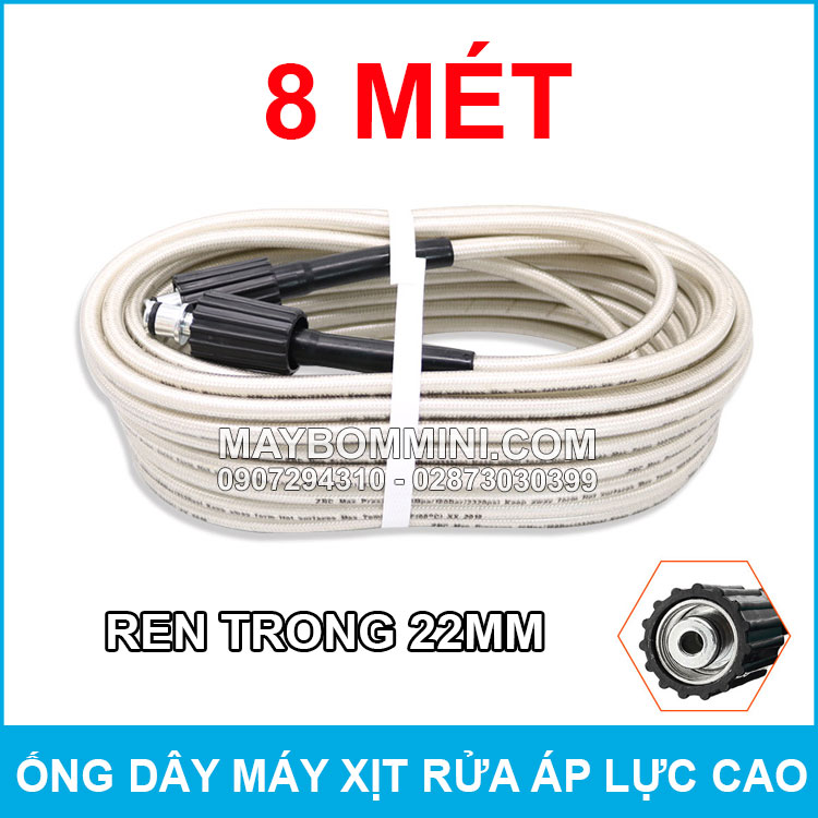 Chuyên phân phối các loại ống dây áp lực cao ren trong 22mm 8 mét sử dụng cho các loại máy xịt rửa áp lực cao. Có khả năng chịu được áp lực nước khá lớn từ máy bơm áp lực để rửa xe rửa máy lạnh vệ sinh nhà cửa nhà hàng quán ăn, đây là ống được sản xuất chính hãng từ các nhà cung cấp máy áp lực cao.