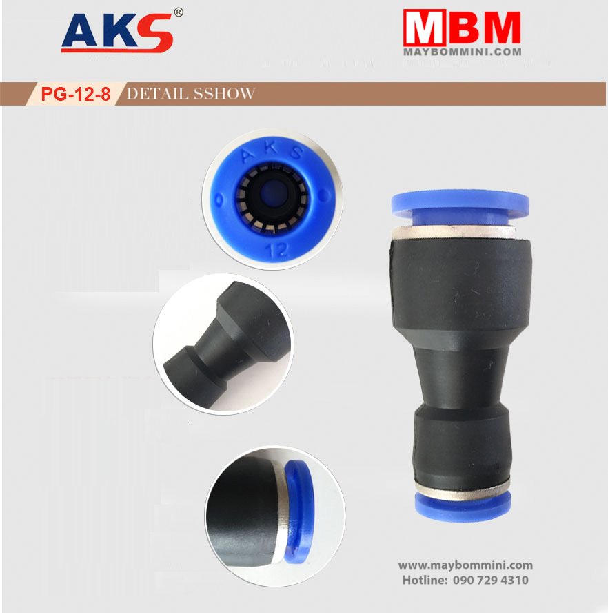 PE 12-8 AKS nối nhanh là loại nối nhanh thường dùng trong các thiết bị sử dụng hơi và bơm nước áp lực cao. Có chức năng nối ống nhanh và chuyển từ các loại ống có phi 12mm xuống ống 8mm.