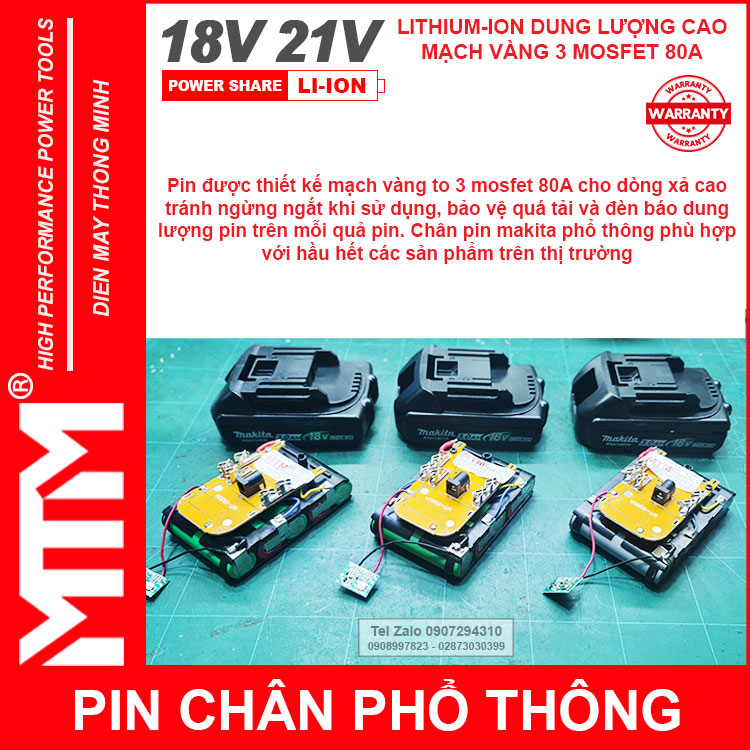 Bán pin chân phổ thông Makita 18V 21V 7.5Ah 15 cell mạch 80A led báo pin cell EVE 25P. Sử dụng cell Lithium-ion 18650 12C 30A EVE chính hãng chuyên dụng cho các thiết bị cầm tay chịu tải lớn dòng xả cao như bắn vịt, bắn bulong, máy khoan, đèn, quạt dùng pin….