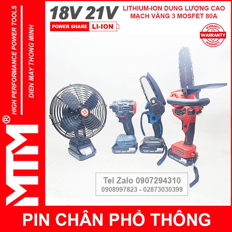 – Pin cho thiết bị cầm tay 21V có trên thị trường sử dụng khe cắm pin Makita.