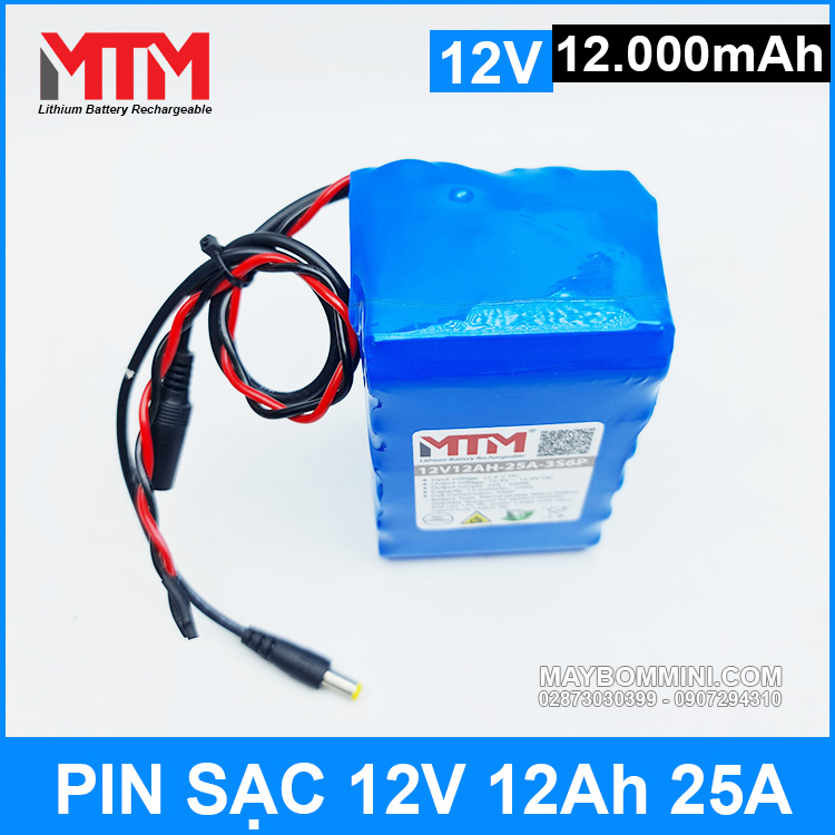 Pin sạc 12V 12Ah 25A 3S MTM kèm sạc