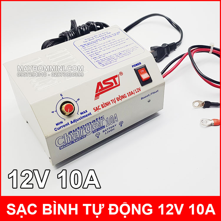 Phân phối sỉ và lẻ sạc bình ắc quy tự động chuyên dụng 12V 10A AST sử dụng sạc các loại bình ắc quy khô hoặc ác quy nước cho ôtô xe máy xe điện tàu thuyền. Bạn cũng có thể sạc cho các loại bình từ 3Ah đến 100Ah 12V, sạc bình ắc quy này là loại tự động giãm dòng sạc khi bình gần đầy và ngắt thông minh khi bình đầy rất tốt giúp tăng tuổi thọ cho bình ắc quy.