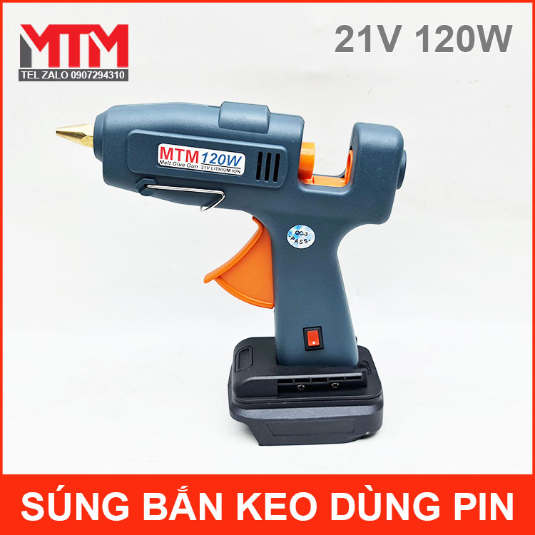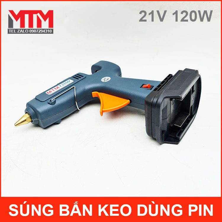 Súng bắn keo dùng pin Lithium 18V 21V 120W MTM cao cấp chính hãng giá tốt dùng pin chân cắm Makita có trên thị trường. Sử dụng keo nến Silicon 11mm nóng chảy tiện lợi và an toàn hơn loại súng keo dùng điện 220V.