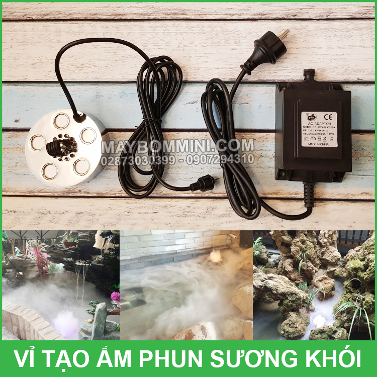 Cung cấp phân phối vỉ tạo ẩm phun sương khói 5 mắt có đèn LED kèm nguồn điện rất thích hợp sử dụng cho các tiểu cảnh, hòn non bộ, máy tạo ẩm, hệ thống làm mát nhà yến, làm tươi mát trái cây bảo quản, hồ non bộ phong thuỷ.